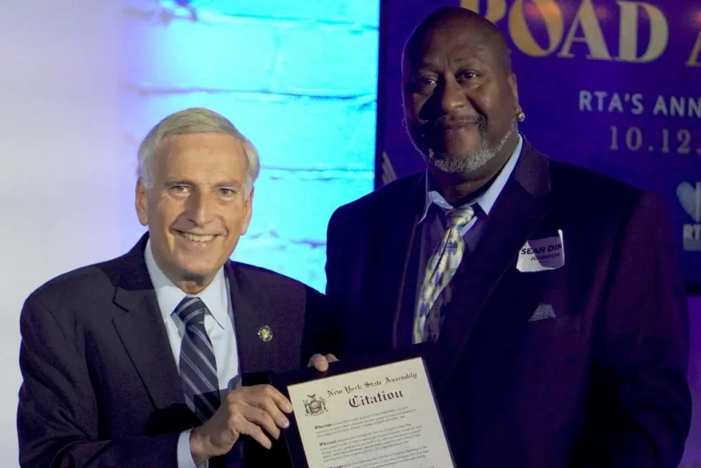 RTA Alumnus Award Honoree, Sean Dino Johnson receives a Citation from NYS Assemblymember David Weprin.